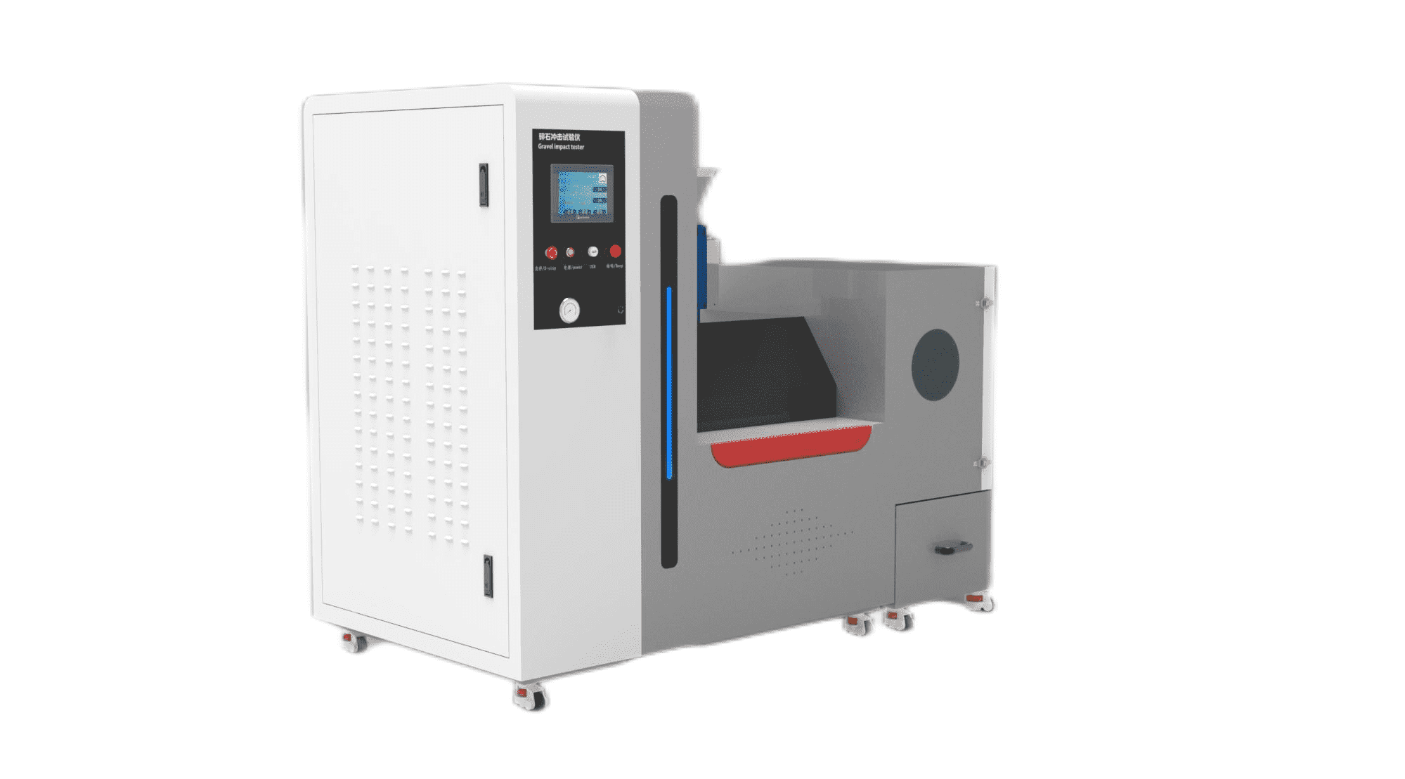 l 设备状态指示灯:安全门锁关闭状态、收集仓位置状态、试验件安装到位状态、上电状态、碎石状态是否有待喷射碎石等。